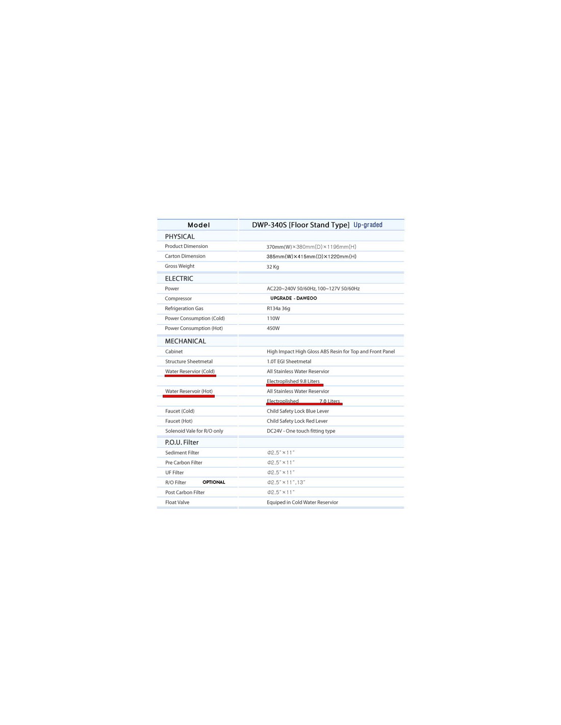 Acest dozator cu conectare la retea si sistem de filtrare inclus are un bazin de apa rece de 9.8 Litri care poate raci pana la 7 grade. Avand o capacitate mare a bazinului aceste purificatoare se pot amplasa in locuri cu trafic intens sau cu un consum mare de apa intr-o perioada scurta de timp.